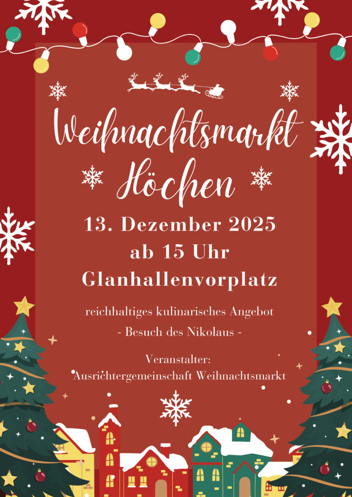 Dann treffen wir uns am Samstag, 13.12.2025 auf dem Weihnachtsmarkt in Höchen.
